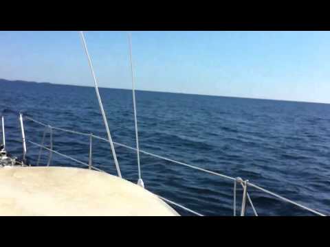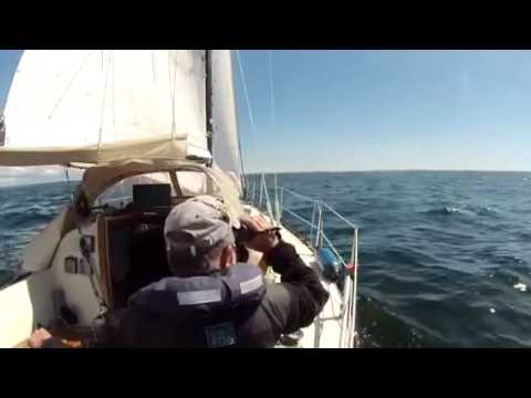 Am nächsten Morgen ging es zeitig los, da der Wind nach Landsort 10 -15 Kts aus 70° bis 120° sein sollte und es dann auch war. Zuerst aber motoren, ca. 3-4 NM, dann ein bisschen Schmetterling und nach der Durchfahrt bei Sävsundet der Wind wie versprochen. Die offene Seite aus Süden lieferte eine Welle von etwa einem halben Meter, auch mal was höher, störte aber die sonst schöne Fahrt nicht wesentlich.